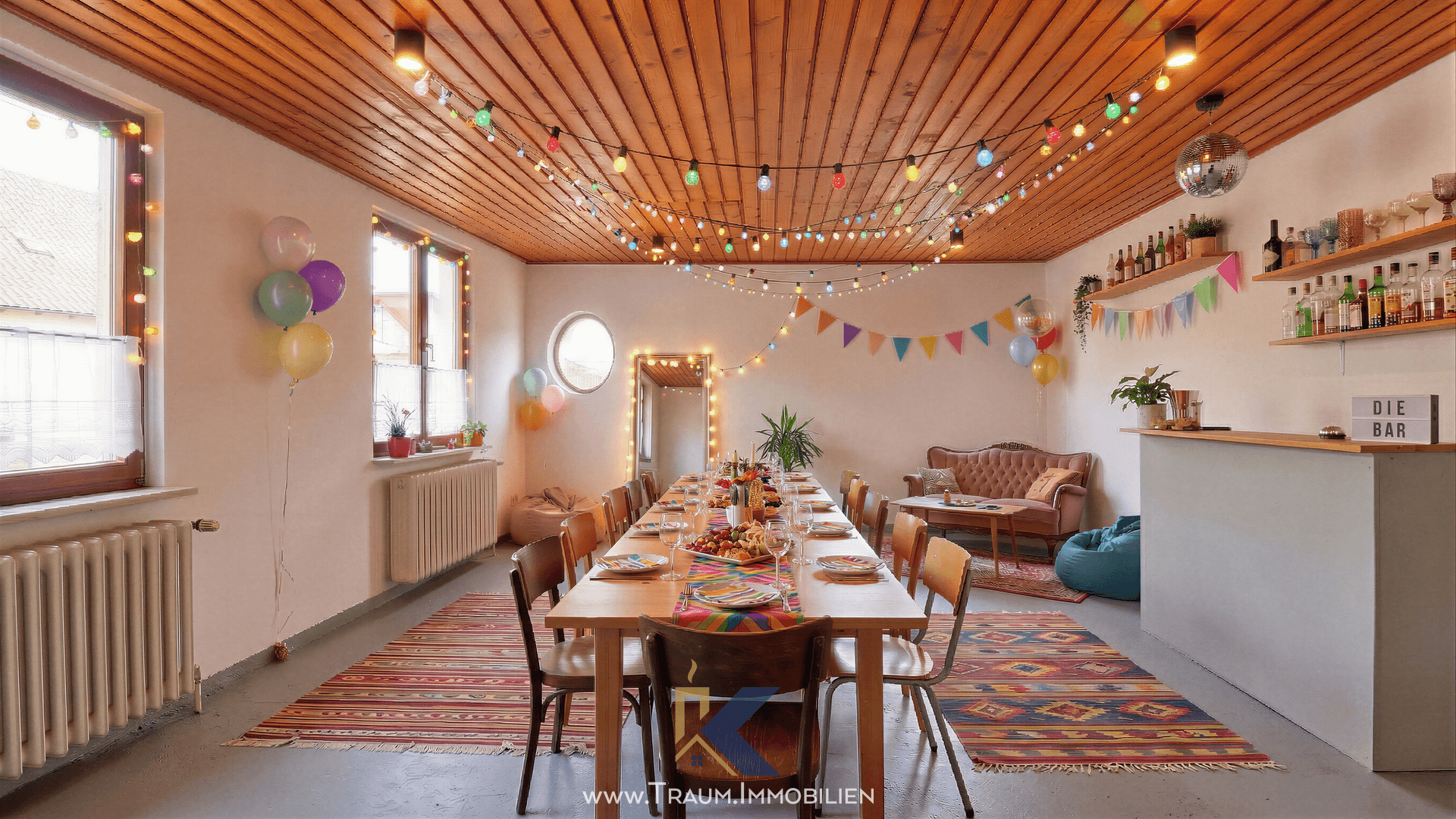 Zusätzlich steht ein Feierraum zur Verfügung. Die Fläche dieses Raumes ist nicht in der angegebenen Wohnfläche von 150 m² enthalten und kann somit flexibel und frei genutzt werden, beispielsweise als Hobby-, Party- oder Lagerraum. Eine Garage kann als Stellplatz für 25 € monatlich angemietet werden. Zusätzlich besteht die Möglichkeit, weitere PKW-Stellplätze im Innenhof zu nutzen.