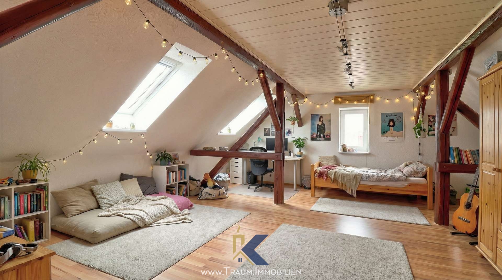 Der Dachboden wurde ausgebaut und erweitert die Nutzungsmöglichkeiten des Hauses, beispielsweise als Jugend-, Spiel- oder Rückzugszimmer.