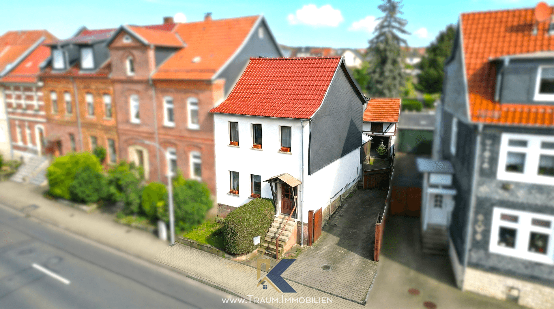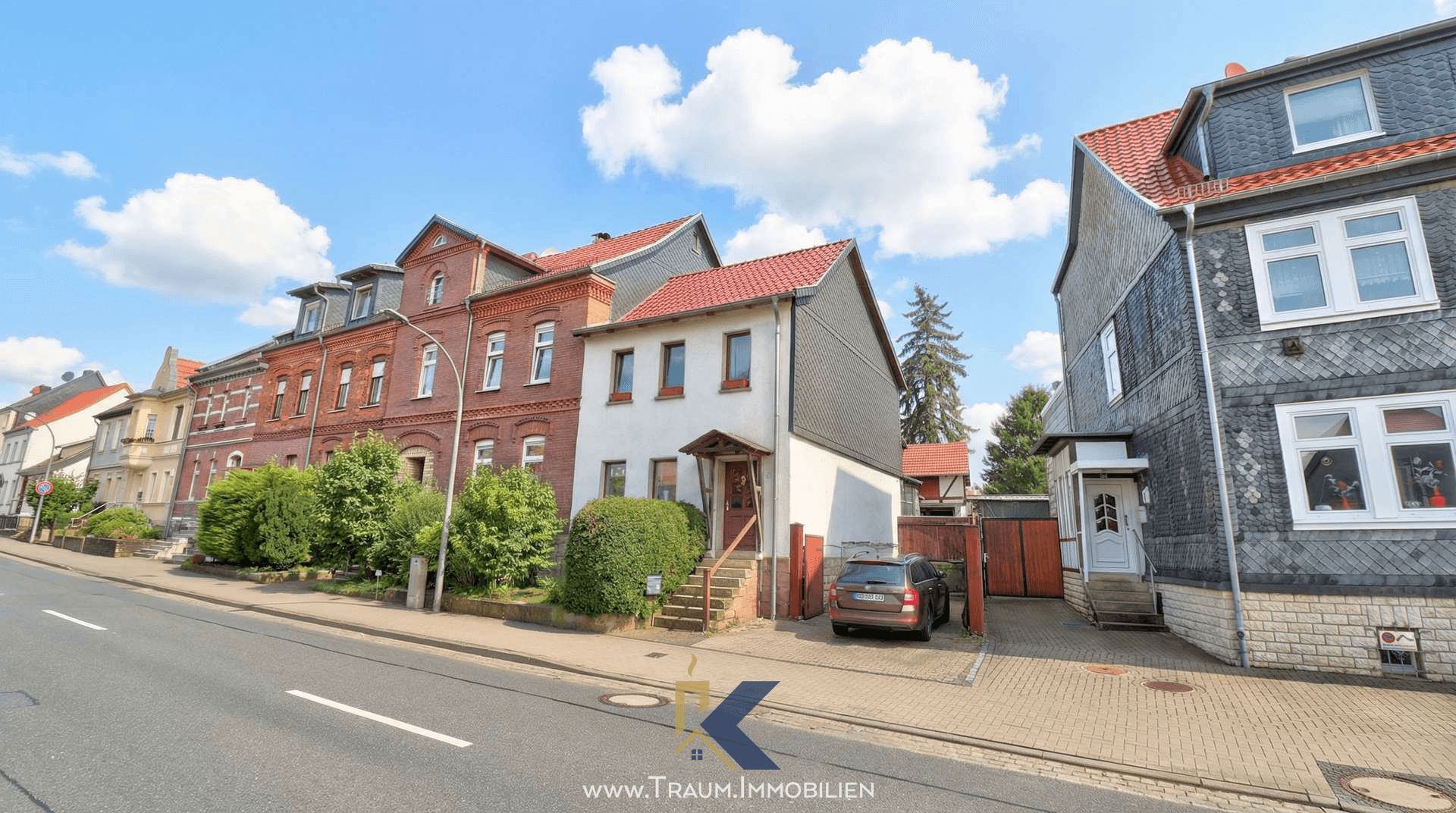 Ein besonderes Merkmal des Hauses ist die seitliche Zufahrt mit Tor, die sich direkt neben dem Hauseingang befindet. Diese ermöglicht einen geschützten Zugang zum Innenhof und unterstreicht den praktischen Charakter der Immobilie.