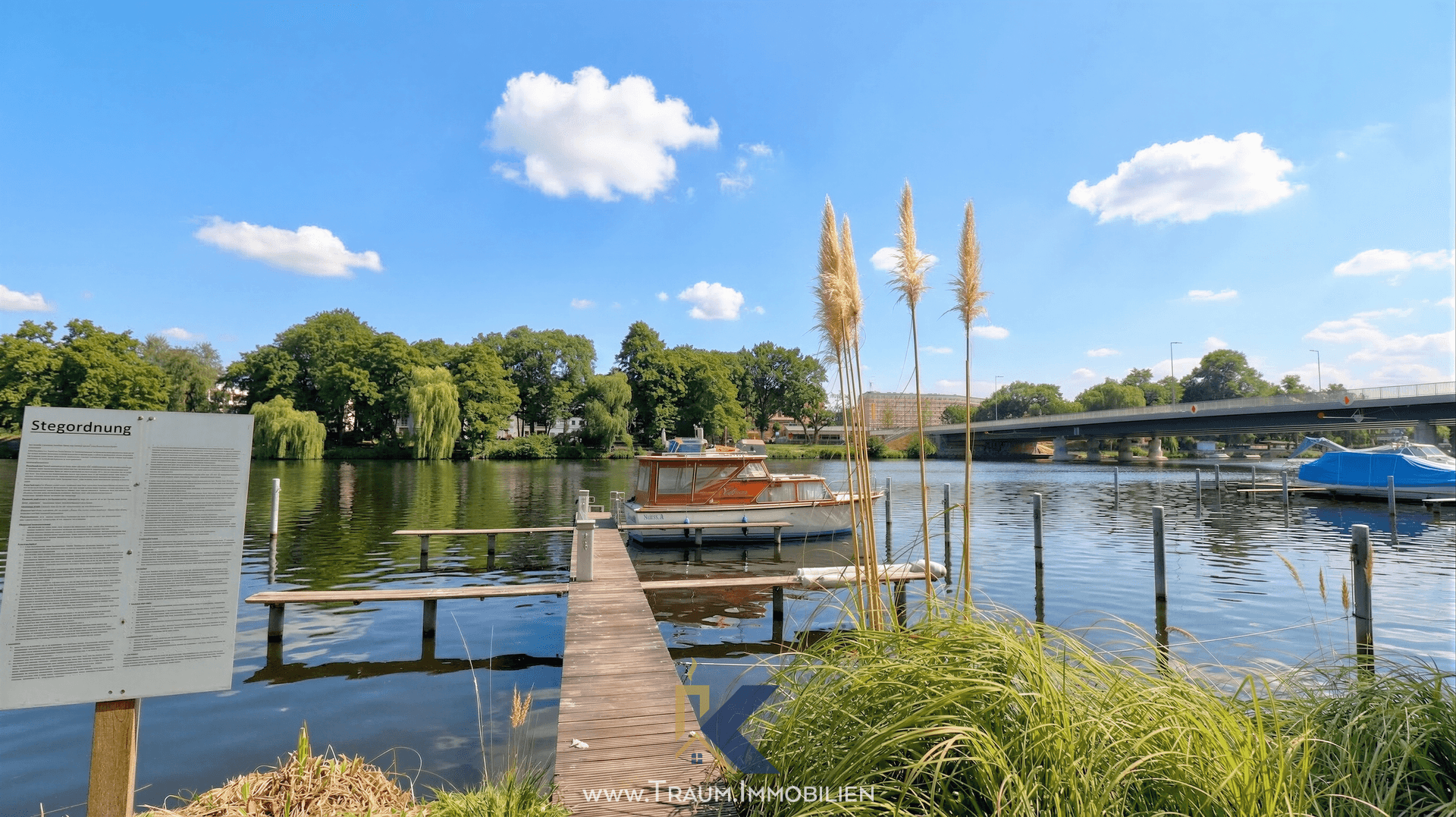Die Immobilie befindet sich in einer der exklusivsten Wohnlagen von Berlin-Köpenick, im idyllischen Bereich Hirschgarten. Unmittelbar am Haus fließt die Müggelspree, die Ihnen vom eigenen Balkon aus einen herrlichen, unverbauten Blick auf das Wasser schenkt. Diese Lage ist ein seltenes Privileg und bietet Naturliebhabern sowie Wassersportlern ein Paradies direkt vor der Tür. Die Infrastruktur ist hervorragend: Ein Kaufland-Supermarkt sowie eine Apotheke sind bequem zu Fuß erreichbar. Für ausgiebige Spaziergänge oder Shoppingtouren bietet sich die beliebte Bölschestraße an, die mit dem Rad oder den öffentlichen Verkehrsmitteln schnell erreichbar ist. In der Umgebung laden zudem renommierte Ruderclubs und malerische Radwege zur aktiven Freizeitgestaltung ein. Die Anbindung an den öffentlichen Nahverkehr ist durch Bus- und Straßenbahnlinien in der Nähe optimal gewährleistet. Familien profitieren von einer guten Bildungsinfrastruktur mit Schulen und Kitas in der Umgebung. Hier leben Sie in einer ruhigen, grünen Nachbarschaft, ohne auf die Vorzüge der Großstadt verzichten zu müssen. Ein Ort, an dem Erholung und Alltag perfekt harmonieren.