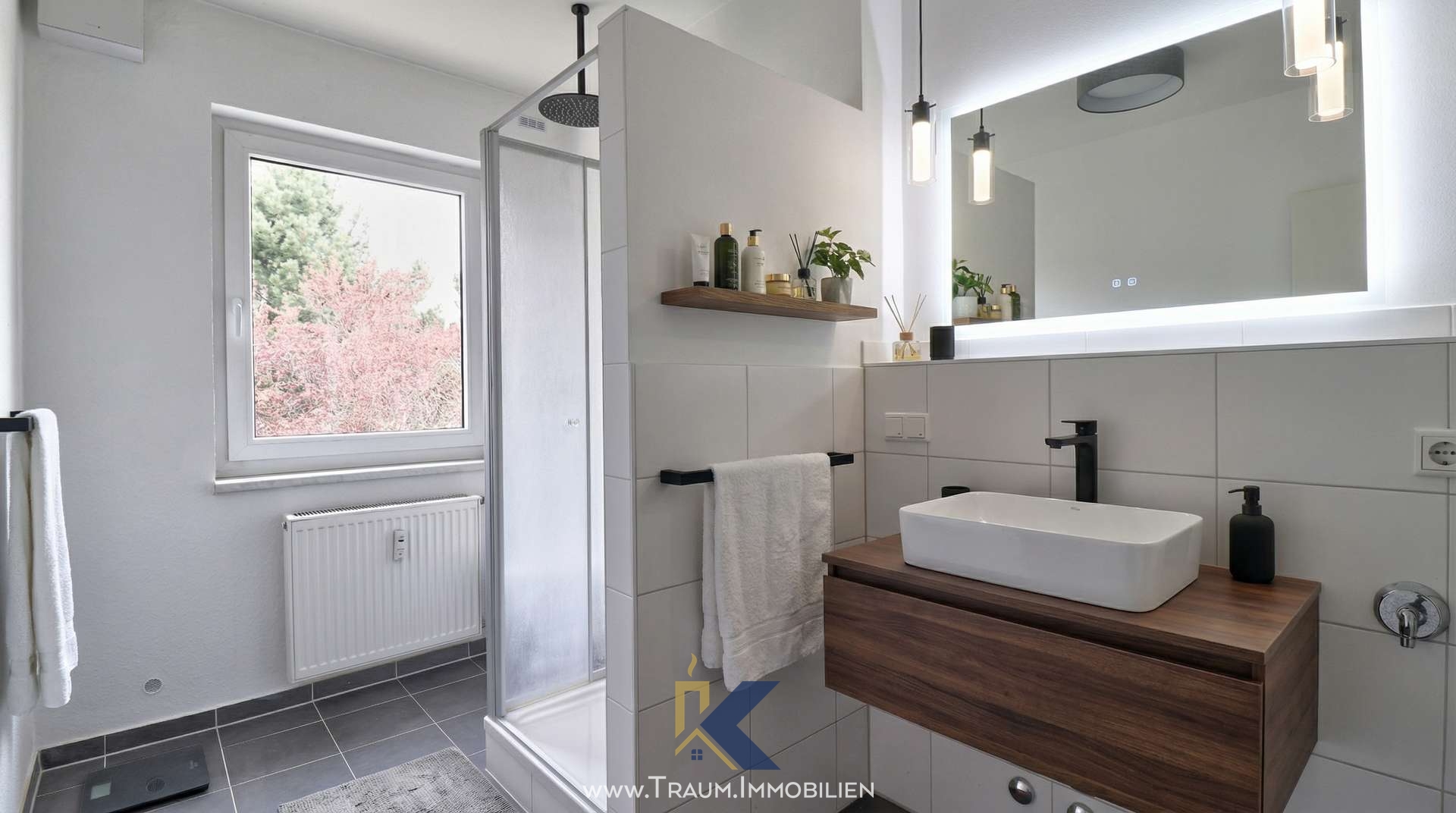 Das moderne Tageslichtbad mit komfortabler Dusche sorgt für einen frischen Start in den Tag. In der Küche haben Sie Raum für Ihre individuellen Gestaltungsideen – hier können Sie Ihre kulinarischen Träume verwirklichen.