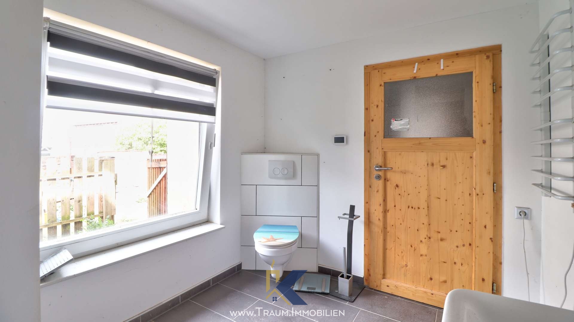 Die Immobilie erstreckt sich über zwei Etagen. Das Erdgeschoss beeindruckt mit einem großzügigen Esszimmer mit anschließender Küche, einem Tageslichtbad mit Fenster und Dusche sowie einem separaten WC. Ein zusätzliches Zimmer im Erdgeschoss bietet vielfältige Nutzungsmöglichkeiten, sei es als Arbeitszimmer, Gästezimmer oder Hobbyraum.