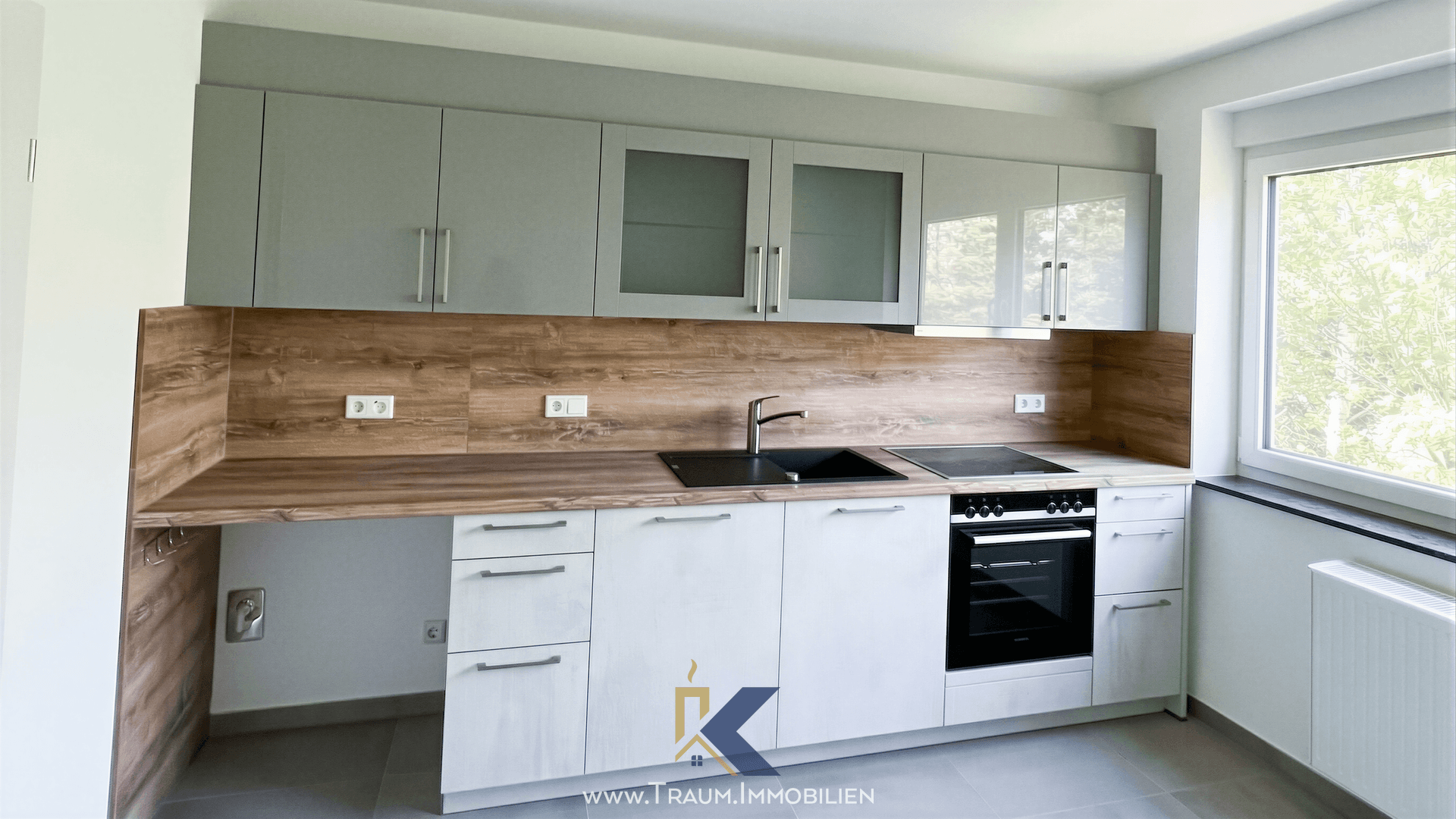 Ein besonderes Highlight der Wohnung ist die neue und moderne Einbauküche, deren Nutzungsentschädigung bereits im Kaltmietpreis enthalten ist. Die Küche verfügt über zwei Fenster, die für viel Tageslicht sorgen, und bietet ausreichend Platz für eine gemütliche Sitzecke. Sie wird vollständig inklusive der Küchenmöbel übergeben und ist mit einer Dunstabzugshaube mit Mauerdurchführung nach außen, einer Geschirrspülmaschine, einem Einbauherd, einem Glaskeramikkochfeld sowie Anschlüssen für Waschmaschine und Kühlschrank ausgestattet.